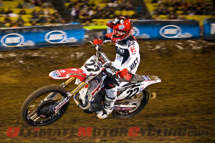 The Haines City, Fla., SX rider was joined on the podium by Two-Two Motorsports Honda’s Chad Reed of Tampa, Fla., and the reigning Supercross Champion, Rockstar Makita Suzuki’s Ryan Dungey of Belle Plaine, Minn.