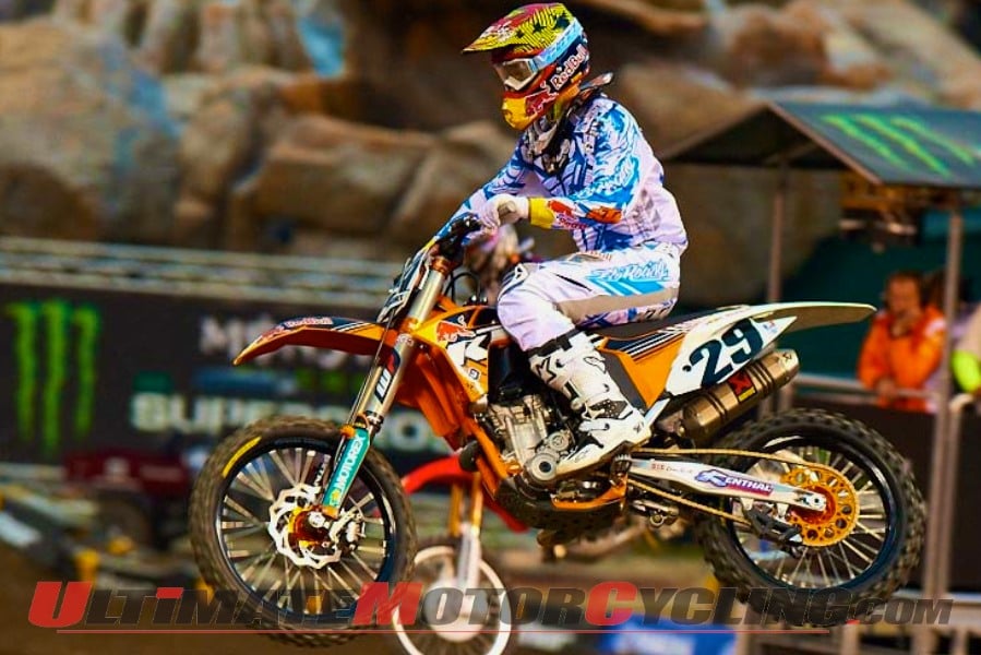 Dungey was able to actually take over the lead for a short time before Canard fought back and fended off Dungey to take the Supercross main victory.