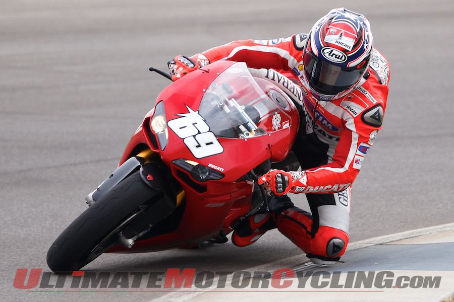 Hayden, teammate of nine-time World Champion Valentino Rossi, conducted a few laps aboard a Ducati 1198 SP at IMS, which was repaved from Turn 5 to 16, an area that plagued the MotoGP grid with bumps. The video above shows Hayden in action.