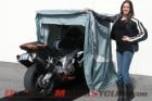 After your ride, you pull into your driveway and into your bike’s own, personal shelter. The retractable waterproof cover is easy to use, keeps out weather, dust and debris, with the added feature of cross-ventilation to prevent any condensation from occurring inside.