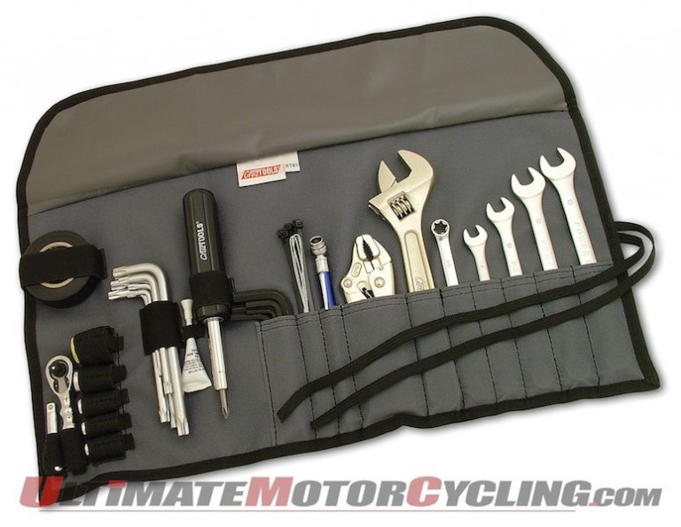 CruzTools makes it a one-stop shop with its new RoadTech B1 tool kit specifically for BMW motorcycles. Contents include a brand-specific assortment of Torx wrenches, locking pliers, an adjustable wrench, a 6-in-1 driver and bits, cable ties, and Loctite, plus bailing wire and electrical tape for a MacGyver scenario.