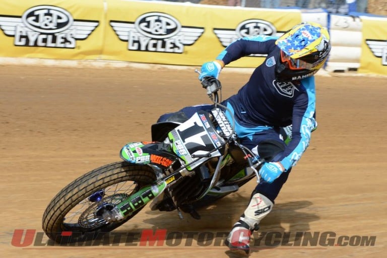 Though he didn’t claim victory at PMC Race Park this weekend, Brad Baker’s second place finish was all he needed to claim the coveted 2013 AMA Pro Grand National Expert Singles Championship as this was the final Expert Singles event listed on the 2013 AMA Pro Flat Track presented by J&P Cycles schedule. Baker’s season on his 450cc machine consisted of three second-place finishes and one fifth place finish. Baker topped Wiles by a mere two points to earn the title.