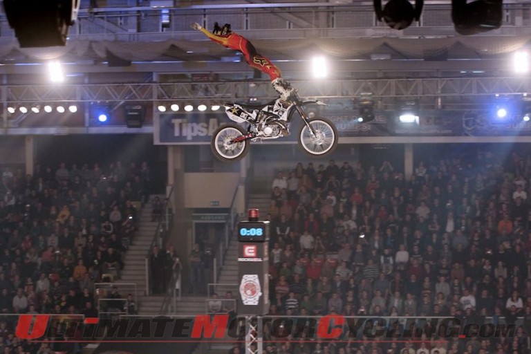 “Another day, another dollar” was what riders contesting the second Freestyle MX European Championship competition were no doubt thinking. Unfortunately, after Friday’s NIGHT of the JUMPS opener, only nine FMX riders were left in Saturday’s line-up.