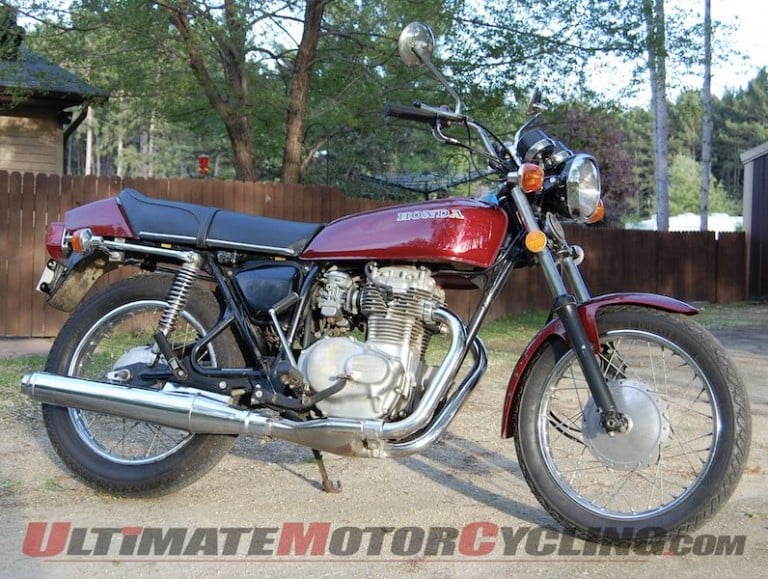 Its 356cc SOHC parallel twin with two valves per cylinder first appeared in the CB360 (with drum brake up front), CB360G (with front disc brake) and CL360 scrambler high-pipe models in 1974. Those versions came with electric starters and six-speed transmissions, flashy two-tone paint, pin-striping, center-stands, and disc brakes were standard on later versions of those bikes.