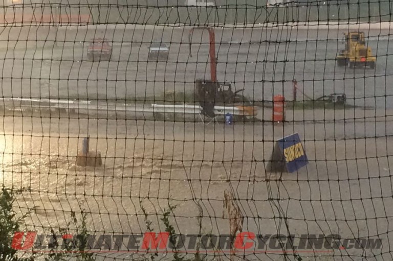 “The rainfall tonight was so heavy that it would be impossible to get the track ready for racing tomorrow even if there was to be perfect weather,” said Dan Johnsen, Director of AMA Pro Flat Track.
