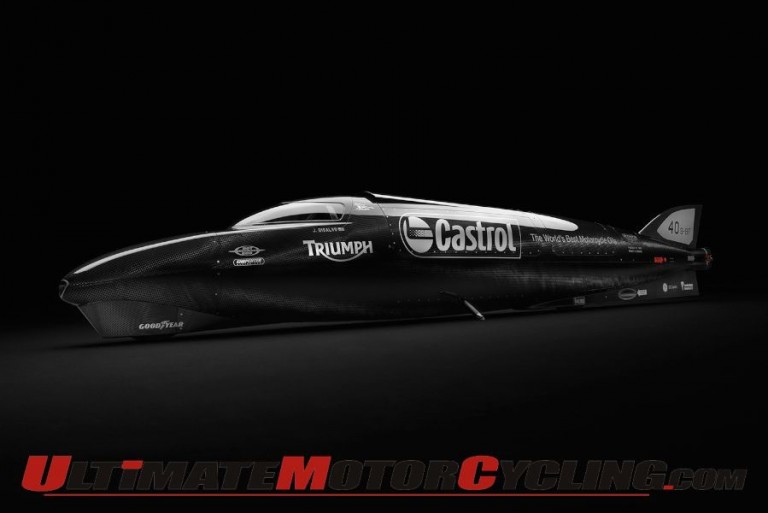 The weapon of choice? The Triumph Castrol Record, which was designed by Matt Markstaller (Hot Rod Conspiracy) and Bob Carpenter (Carpenter Racing). With AMA Pro Road Racing star Jason DiSalvo at the controls of the 1000-horsepower, twin turbocharged Rocket III engine streamliner, Triumph will look to break the FIM World Land Speed Record in its class.