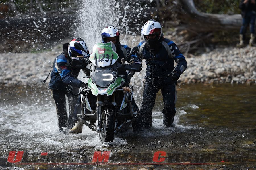 Sixty kilometers of fantastic riding followed, that saw one overenthusiastic journalist going into a corner too hot and sliding down a ravine. Needless to say, the amazing spirit already demonstrated in the Trophy saw a multi-national rescue effort that involved straps, ratchets, brute strength and a pick-up truck to haul the GS back up to the track. Both rider and machine were unharmed and continued on their way after a quick medical check and a series of “high-fives” with fellow participants.