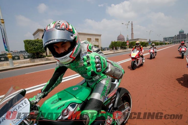 The sole American in all of Grand Prix motorcycle racing rode the Honda along the streets alongside Malaysian stars Azlan Shah of Moto2, and his Moto3 counterparts Zulfahmi Khairuddin, Hafiq Azmi and wildcard rider Hafiza Rofa.