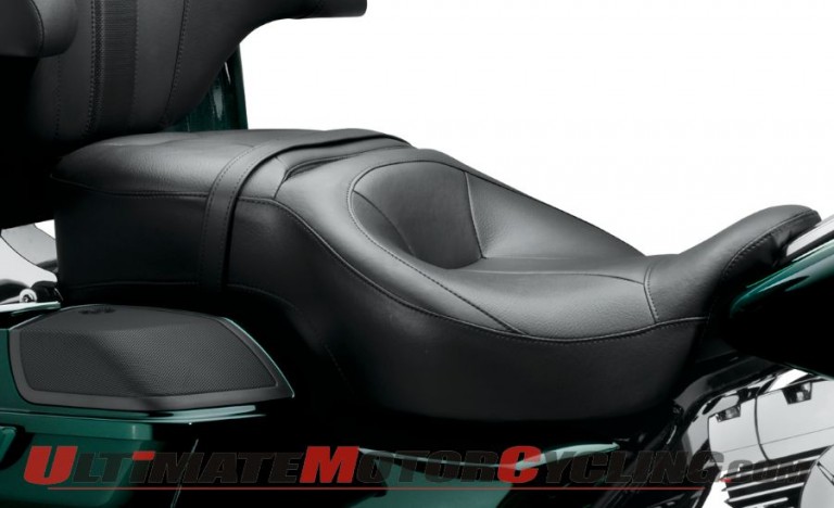 Designed for 2014-later Harley-Davidson Touring and Trike models, this seat offers two separate suspension systems to isolate the rider and passenger from sharp road impacts.