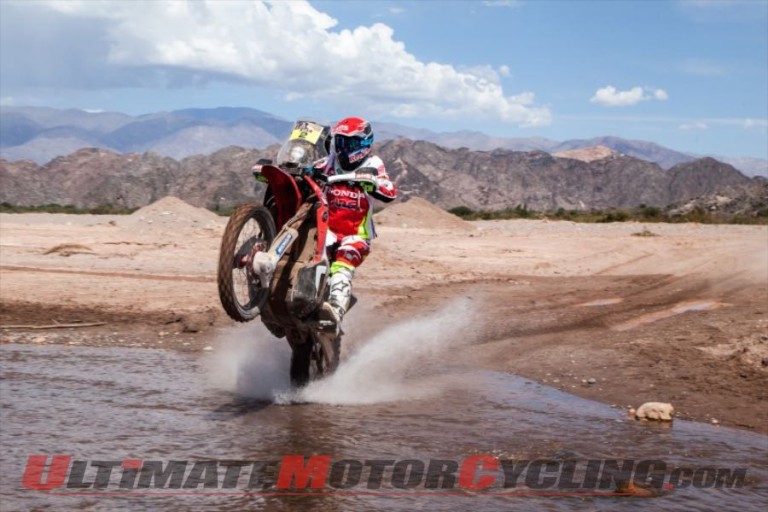 The Honda CRF450 Rally pilot took a demanding lead after winning stage two, and retained the overall top spot after finishing third in stage three. Though much pressure was presented by four-time Dakar Rally winner Marc Coma Wednesday during stage four that took riders 565 miles from the rocky Chilecito, Argentina, to the sand dunes of Copiapo, Chile, Barreda’s mission to win his first Dakar Rally continued.