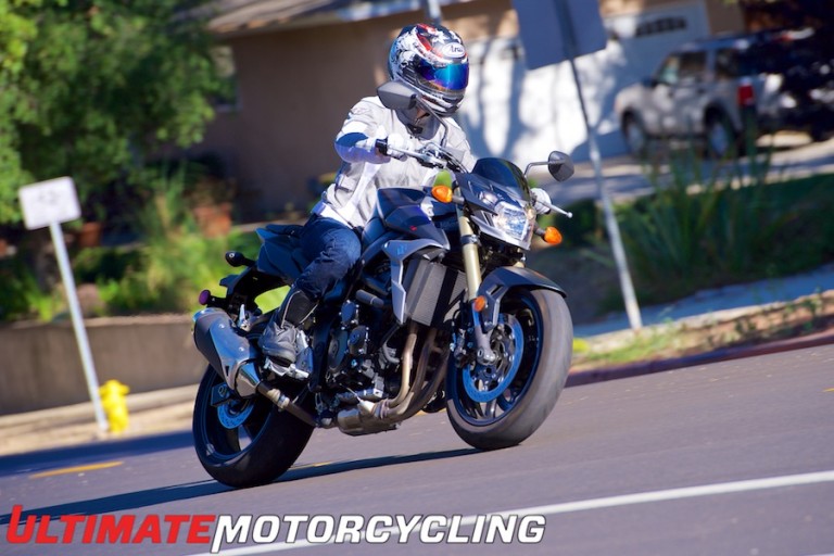 The S750’s smooth engine is rather intoxicating; when you’re on-throttle, you feel the busy, pleasing hum of the four cylinders under you. There’s not enough windblast coming off the naked bike to encourage you to keep the speed down, and the bike’s 57-inch wheelbase contributes to a solid feel. Happily, the mirrors are vibration-free even at high speeds, so you can keep a keen eye on other vehicles, especially those in black-and-white and overly concerned about your speed.