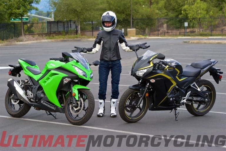 The Honda CBR300R and Kawasaki Ninja 300 are undemanding, easy-going rides in small packages that won’t physically overwhelm you. Yet, they can be ramped up to provide totally fun, exhilarating rides if you choose to ride hard in the upper rpm range.