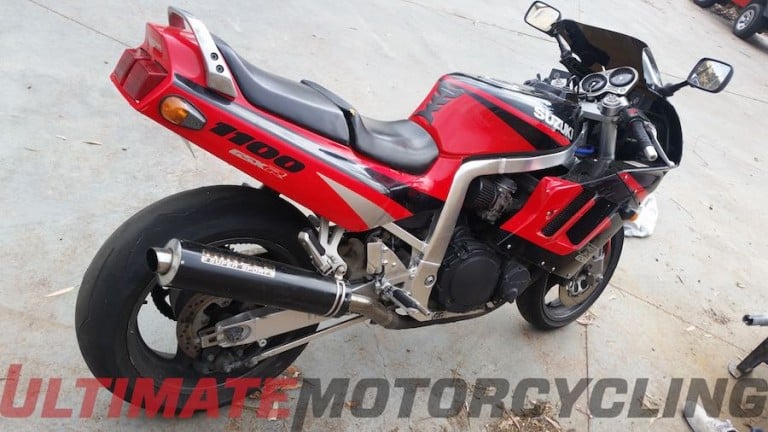 My chosen project bike will be this 1991 Suzuki GSX-R 1100 M. I picked this one up on Craigslist for $1,500. The frame is straight, the motor is strong and the title is clear. Everything else can be fixed with a modest budget, some determination and a large tin of elbow grease. The most obvious drawback of a bike from this era would be the wheelbarrow like handling.
