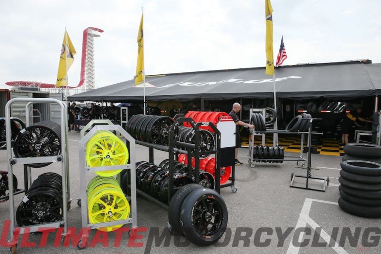 According to Tony Romo, a Dunlop Motorsports Technician, the qualifying tire that riders will be using is good for four laps. Two laps to settle in and warm up the tire, one lap to lay down a time and one lap to bring it all back in. That seems like a lot of effort to expend on a single lap but the gains are there. Romo claims that they’ve seen numbers up to a second lower than what is used in race conditions and a one second margin is huge in motor sports.