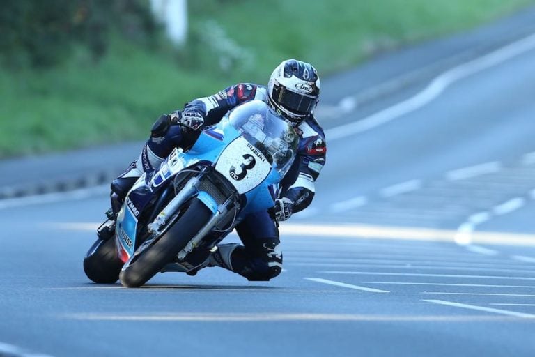 After the newcomers completed an un-timed speed controlled lap, the Superbike class got underway included two-time race winner Michael Dunlop on the Team Classic Suzuki XR69, Steve Mercer on the Mistral Racing Kawasaki and Ivan Lintin, recovering from an accident at Scarborough, on the Devitt/RC Express Racing Kawasaki.