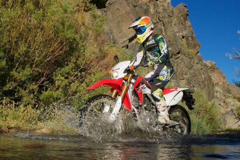 Back when I was new rider, I spent a fair amount of time picking myself up out of the dirt, dusting off, and futilely kicking my flooded 1986 Honda XL250R—a distant ancestor of the CRF250L. The second best thing for a beginning rider—the first being the right size bike—is an e-start bike.