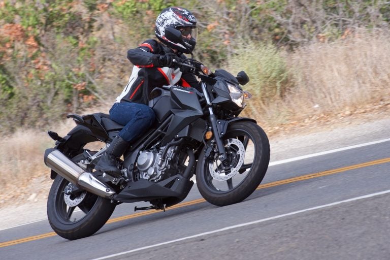 The CB300F makes a great commuter if you ride in tight traffic, especially if you can legally split lanes on the freeway. The bike’s small stature allows you to sneak through the narrow spaces left by sloppy drivers peeking at their cell phones, but you’ll have to be extra vigilant. You are much easier to be overlooked, no one is going to hear the quiet bike coming, and you can’t squirt away from danger as quickly as on a mid-size bike.