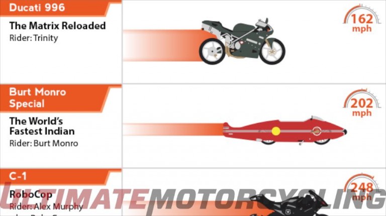EVELO, a designer of electric bicycles, released the following infograph of famous bikes that have appeared in movies and TV and ranked them by their top speeds. Looks like motorcyclists will be tuning for more power, and cyclists will be relying on Power Meters to help optimize their human performance.