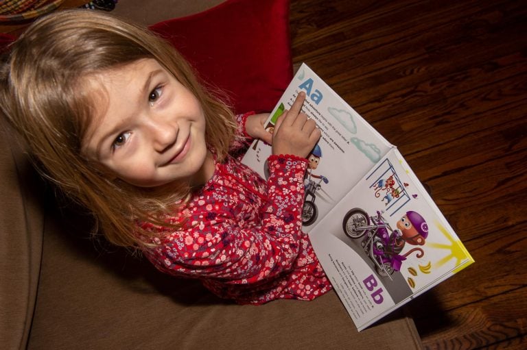 Kaitlin also happens to be right in the throes of learning how to read. So, when I presented her with Mimi and Moto Ride the Alphabet, she was all over it, regardless of the subject. She immediately enthusiastically began either reading, or attempting to read, every single page of the book. The book rides the alphabet from A to Z, keeping a child’s interest the entire route.