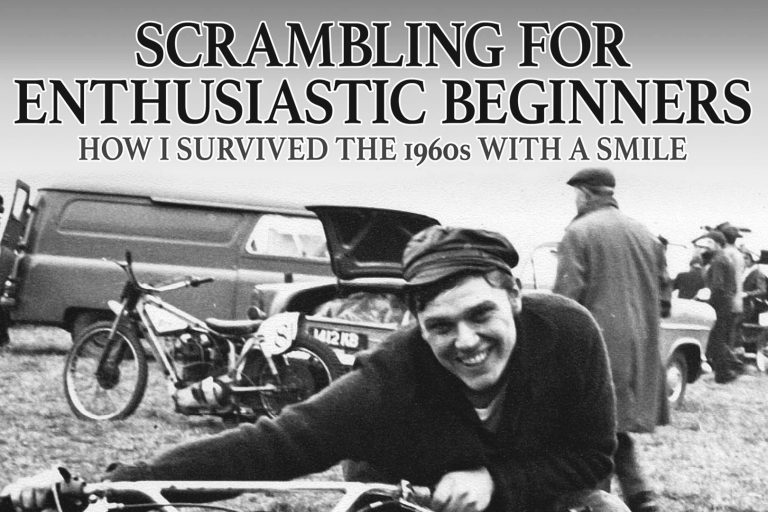 Author Frank Melling is at it again. Last year we reviewed his book “Classic Superbikes — Inside Stories of the World’s Greatest Classic and Retro Bikes.” This time, it’s a more personal story. “Scrambling For Enthusiastic Beginners — How I Survived The 1960s With A Smile” is about his time racing motorcycles in British dirt. Yes, it’s a memoir, not a how-to.