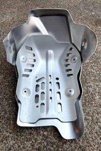 Good protection equipment is essential for motorcyclists and their motorcycles, whether on pavement or off-road. Have you ever run through the edge of a bush thinking it was just leaves and buried out of view was a branch that hit your boot’s shin guard? I have. That is when I take a moment to thank myself for buying those boots. You can usually limp a motorcycle back to civilization even if a major component is dented, bent, or broken. It gets a whole lot more difficult to get out of the wilderness if a major component on your engine is smashed by a big rock or limb.