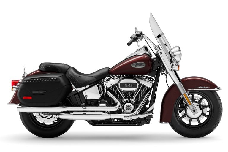 Aside from the new aesthetic options this year, the big news is that the 2022 Harley-Davidson Heritage Classic comes standard with the Milwaukee-Eight 114 powerplant—last year’s 107 is no longer a choice. Although it produces more intense vibrations, the 114 does crank out a muscular 119 ft-lbs of torque, which are especially welcome when riding two-up.