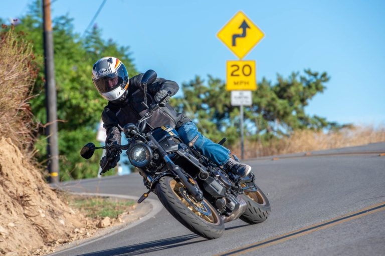 - As much as we like the XSR’s engine package, we’d like to lobby for a few improvements. The fueling when completely closing the throttle or opening up the throttle from completely closed can be a bit notchy. If you have a deft wrist and take advantage of that skill, you can keep it smooth in both directions. However, if you don’t give the throttle your full attention, you’ll notice the slight jar. The transmission is superb, but the clutch is falling behind compared to the competition—it has neither assist nor slipper functions. A lighter clutch pull is always welcome, especially in traffic, and we skipped the rear tire a few times on downshifts during spirited canyon riding.