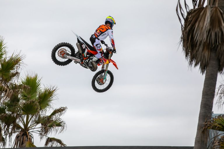 Marvin Musquin went undefeated on his way to his 250 Class win at the 2022 Red Bull Straight Rhythm on the sand at Huntington Beach in Southern California. Musquin beat Josh Greco, Aaron Plessinger, Josh Hansen, and Ken Roczen in succession without losing a single matchup. It is Musquin’s fourth Red Bull Straight Rhythm title, with previous wins coming in 2014, 2016, and 2017. It’s his first win on a KTM two-stroke.