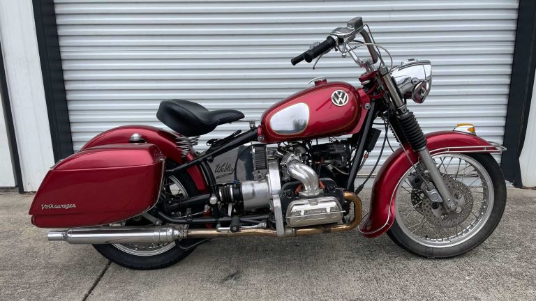 Take a 2000cc Volkswagen horizontally opposed four-cylinder motor, drop it into a modified 1960s BMW motorcycle chassis, and you have a fascinating custom build. Despite its listing, the 1953 Webley-Vickers VW2000 motorcycle was built in the 1970s by Doug Whitson, and there’s an interesting story behind it all.