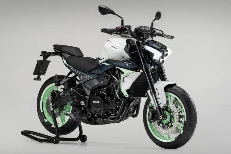- Braking is heavy-duty on the 2025 Benelli Tornado Naked Twin 500. That’s a pair of massive 320mm discs in the front, and the Benelli-branded calipers are radially mounted. The rear disc is huge at 260mm, with a plain-wrap single-piston caliper. ABS is standard.