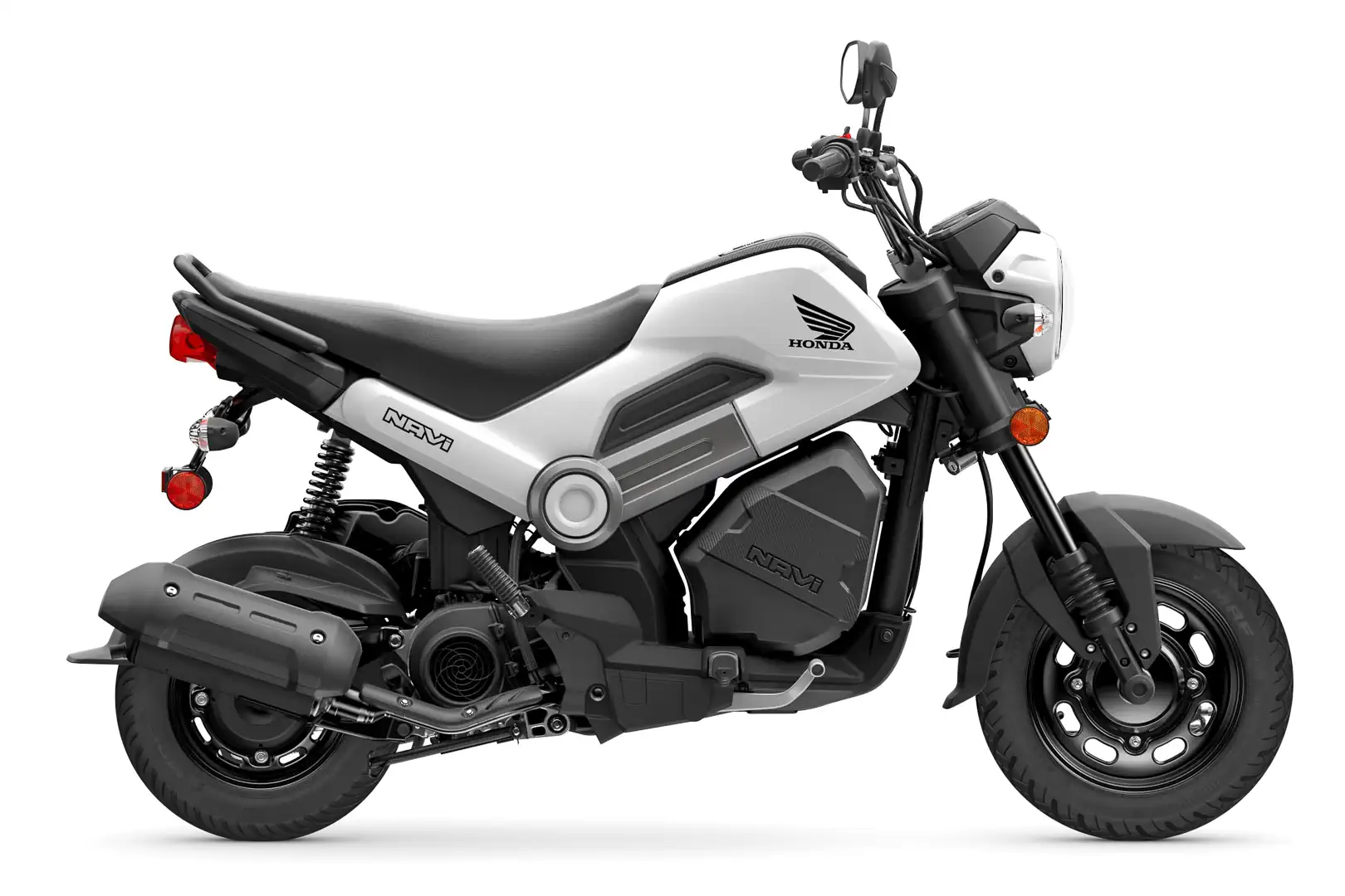 Fuel efficiency is notable at 110 mpg, though the fuel tank capacity is slightly less than one gallon. Maintenance needs are minimal. The 2025 Honda Navi is available in the same four colors as last year—White, Arctic Silver Metallic, Pearl Red, and Blue Metallic. You will pay an extra $100 if you want a color other than white.