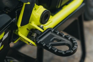 - The motor has several safety features. The ignition is PIN-protected, allowing parents to have complete control over its use. There’s a two-step starting system to make sure everyone knows the motor is ready to go. Should the rider fall off, a lanyard kill switch shuts down the power. Also, the final chain drive is fully enclosed to avoid entanglements.