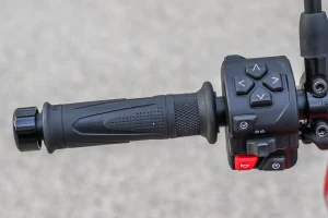 - You can switch between ride modes on-the-fly as conditions change. As long as you have room to roll off the throttle for a few seconds, moving between ride modes is almost seamless. Tap the mode button sitting under the turn signal toggle switch on the left switchgear to cycle through Rain, Road, and Sport. Close the throttle and push the ✓ button to confirm. The ECU switches maps to the selected ride mode, either sharpening or softening the power delivery and reducing or increasing traction control intervention.