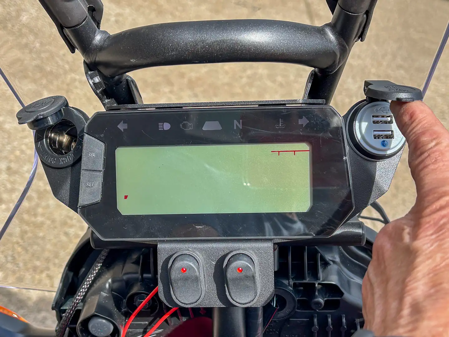 When I got deep into disassembly, I stopped checking the time, working blind through the following steps. Like most motorcycle work, the second time around, we’re all experts. The Dash performs as expected. I now have USB-A power to my phone and Insta360 X5 action camera. The 12-volt socket holds a USB/voltmeter, the right rocker powers my Garmin Zumo XT2, and the left powers my Denali D3 driving lights.
