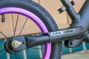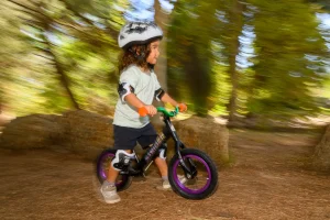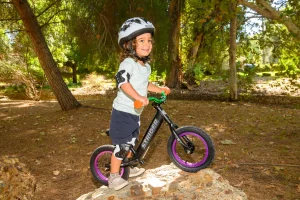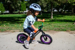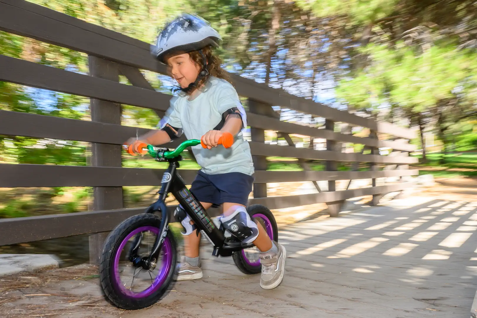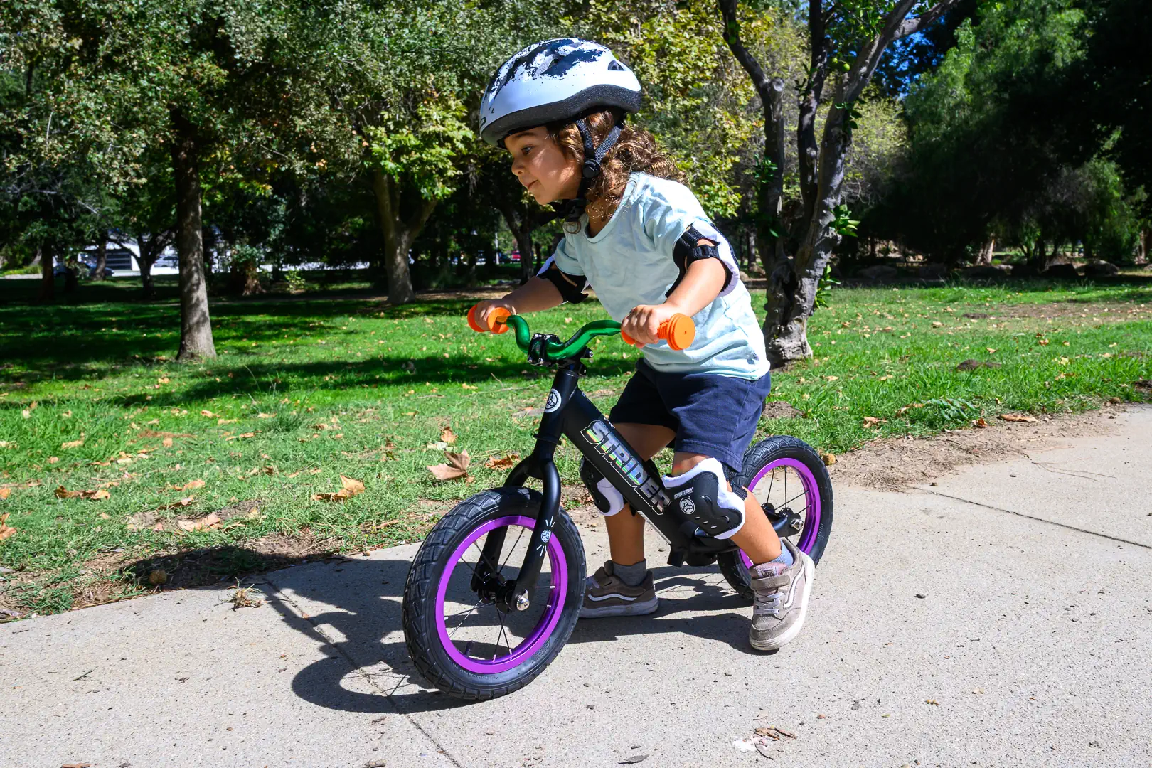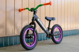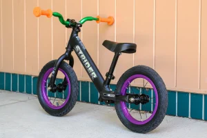 One of the great things about the Strider 12 Sport is its customizability. This allows the young rider to get involved right from the start. The basic bike is $140 and eight colors. Ike got started with a Black frame. From there, he added the purple, wire-spoke High-Traction wheels ($80; six colors available), purple Aluminum Riser handlebar ($25; six colors), and orange Mini Grips ($10; nine colors). With those accessories, Ike’s ride totaled $255.
