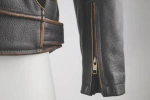The ability to fine-tune the jacket for the temperature is an impressive feature of the River Road Hoodlum Vintage jacket. This is not a heavy jacket—the distressed leather is supple and medium-weight, though River Road does not specify a thickness.