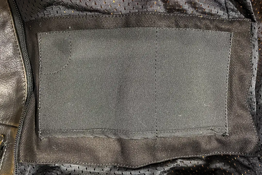 Storage is limited, though there is a special feature. Outside, there are two handwarmer pockets with six-inch zippered closings. Like all the zippers on the jacket, they’re from YKK and have short leather pulls attached—stylish and functional. Inside, there’s a Napoleon pocket with a six-inch zippered closure, which is where I carry my iPhone 12 Mini. There’s also what River Road calls a concealed carry pocket on the lower left side. It’s open at the top with two compartments—one is 4-by-3 inches and the other 4.5-by-4 inches. It’s your call on whether that meets your self-defense needs or not.