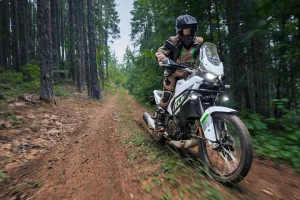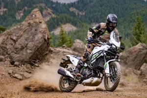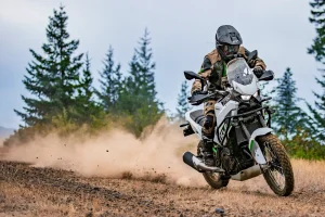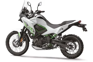 - The 21-/17-inch wheelset is adventure-ready. The wheels have aluminum rims and steel spokes. We’re not sure if they are tube or tubeless rims on the 2026 Kawasaki KLE500.
