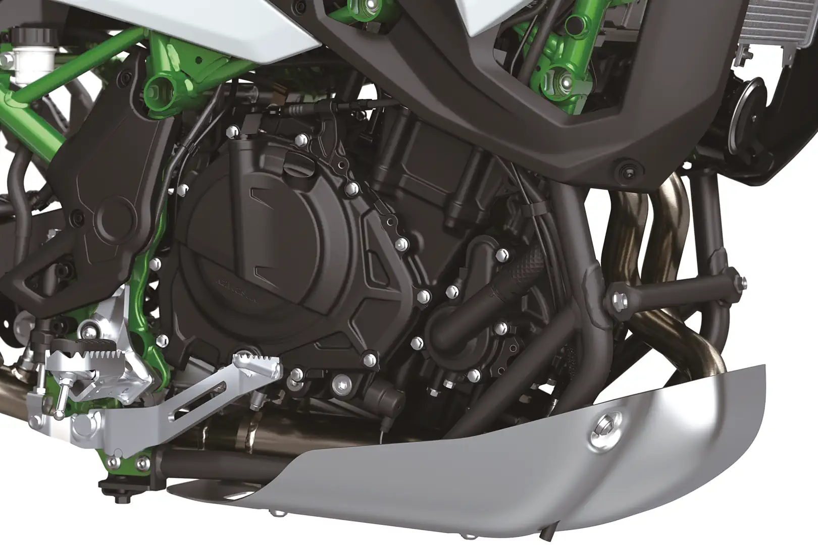 - A steel trellis frame uses the motor as a stressed member. The engine is canted forward to lower the center of gravity, with the KLE500 offering 6.8 inches of ground clearance below the aluminum skidplate. The swingarm is square-tube aluminum, and the subframe is beefy enough to handle a passenger, panniers, and a top case. The entire frame weighs just under 42 pounds.
