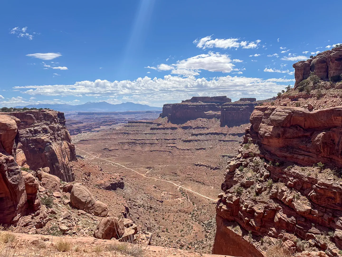 We entered via the Shafer Trail, a dizzying descent of steep, narrow switchbacks carved into a cliff face. It’s not highly technical, but the exposure and drop-offs demand full attention.