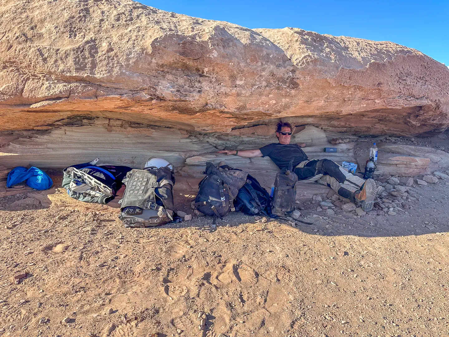 We camped under a sky jammed with stars, fighting dehydration with warm bottled water and dreams of cold beer in frosty mugs. The next morning, we opted to backtrack instead of finishing the loop—we were told that even worse technical sand and climbs awaited us further down the road, and we were nearly out of water.