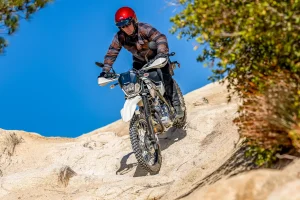 Around town, the motor’s as agreeable on the pavement with urban traffic as it is boondocking. On backroads, there’s plenty of power on tap for a good time. The 233cc motor has the beans for freeway riding, as long as you don’t try to run with the big dogs in the #1 lane or try to ride long distances. Urban freeways with a 55 mph speed limit are doable, though you won’t have snappy throttle response at that speed. You’ll want to keep momentum.