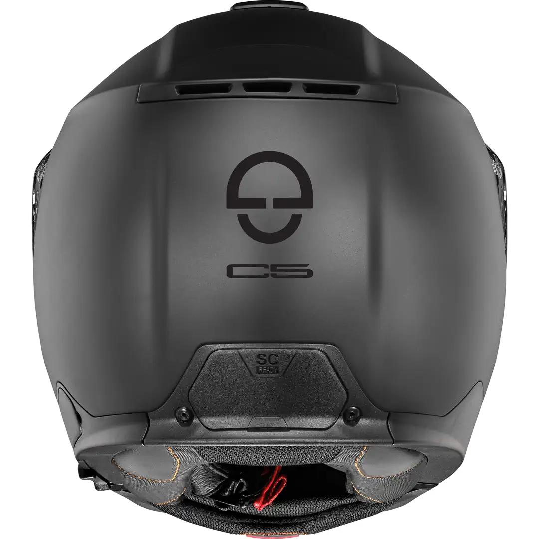 Structural changes from the standard C5 accommodate the electronics. Revised EPS side sections create dedicated speaker cavities without compromising impact absorption. A new internal cable harness routes power and data from the battery pack at the lower rear rim to the speakers and Cardo SC Edge ANC intercom module.