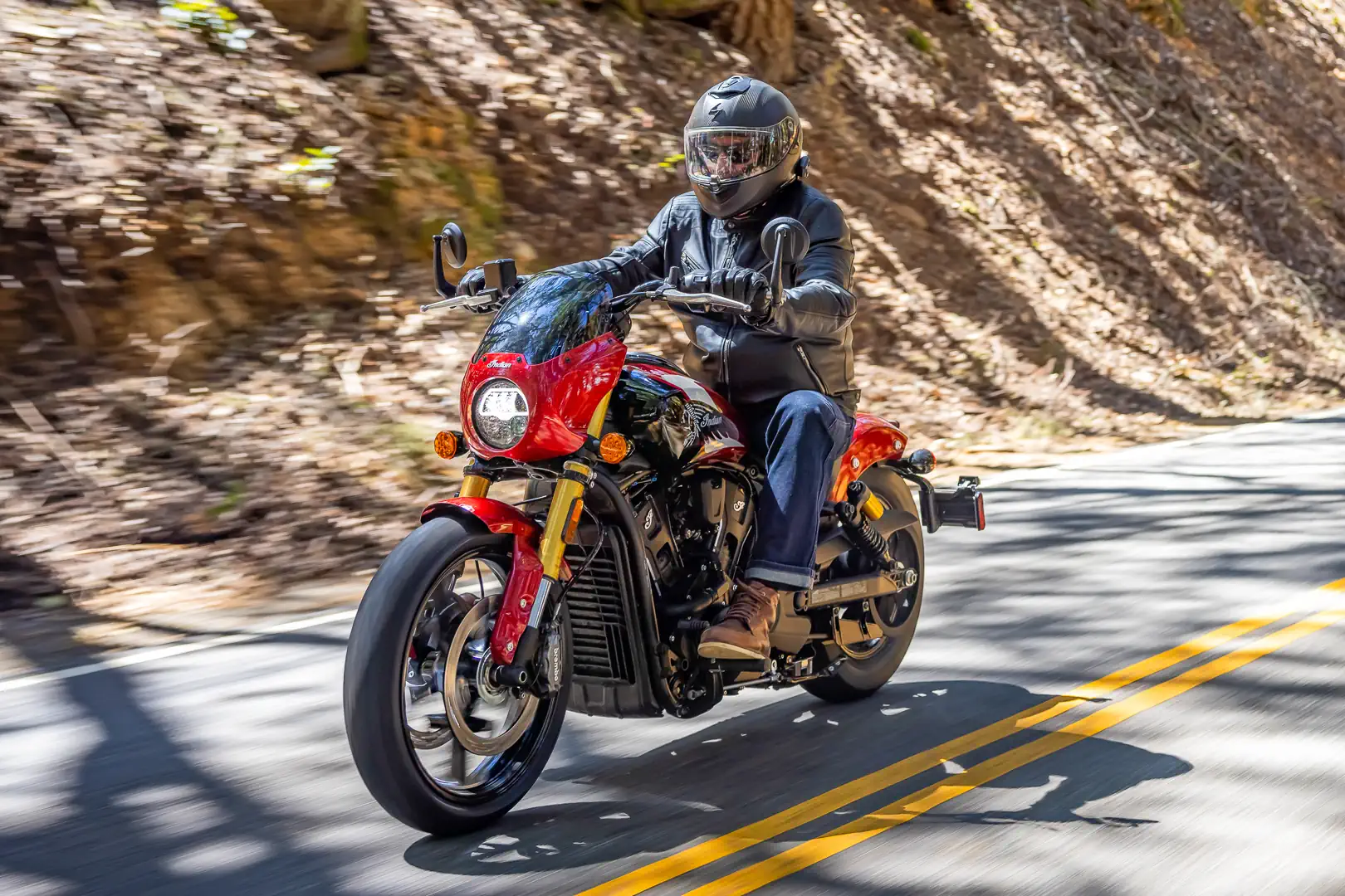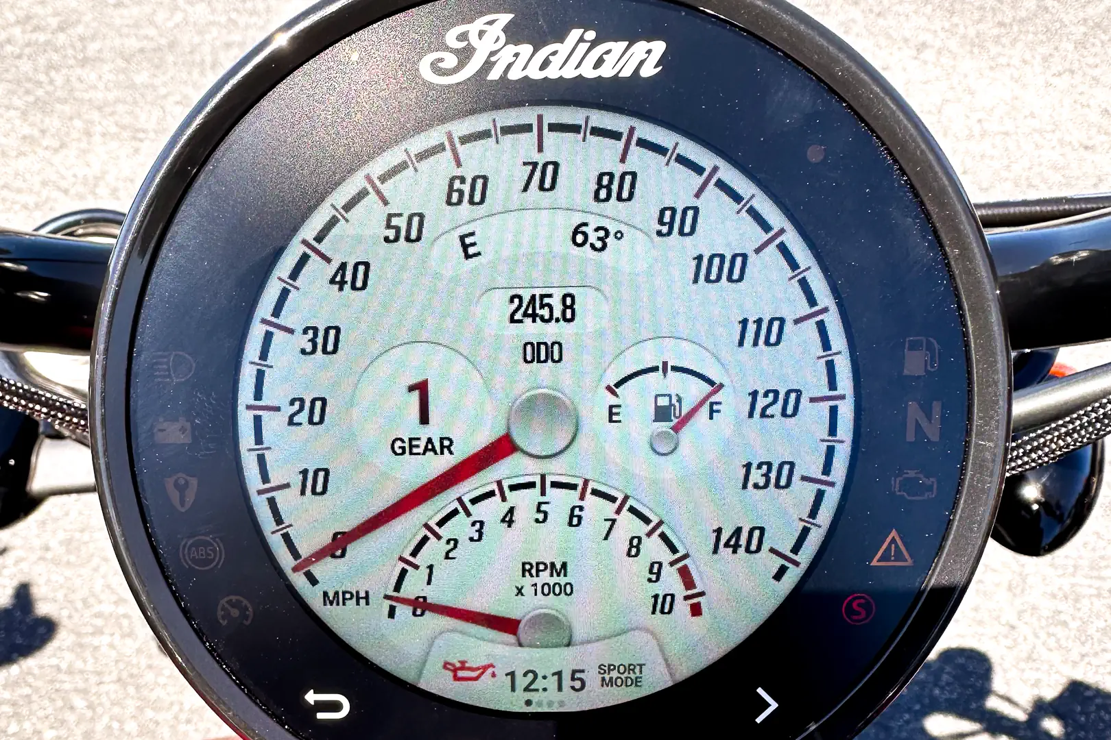 1. On the freeway, the 2025 Indian 101 Scout has absolutely no problem keeping up with the Joneses. A bigger issue is evading a speeding ticket, as the SpeedPlus 1250 will take you up to, say, 90 mph before you know it when entering via an on-ramp or connector ramp between freeways. The throttle means business, particularly when you’ve selected the Sport mode. The bikini fairing protects you from the wind enough to encourage higher speeds.