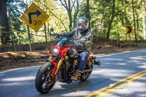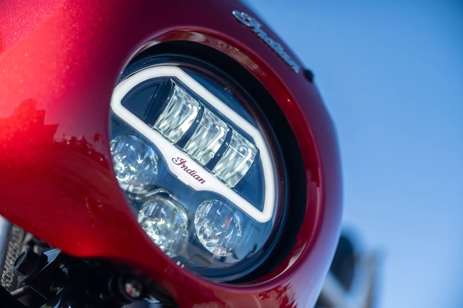1. The Indian 101 Scout is an all-day rider. It’s easy to run through the 3.4-gallon tank without a break, whether you’re riding through rural roads or taking a ride through a sprawling metropolis. The custom-stitched seat doesn’t numb the butt, and the aggressively stylish ergonomics fall just short of being uncomfortable. Also, the 101’s 549-pound curb weight won’t wear you out. You’ll make friends at the gas station or coffee shop, as people will walk up to admire the bike and ask questions—it’s an attention getter, especially in Sunset Red Metallic.
