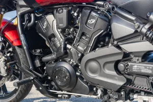 1. The 2025 Indian 101 Scout’s new SpeedPlus 1250 motor sets loose six more horses from the V-twin corral. The 111 horsepower peak comes at the same spot in the rev range—7250 rpm—as the rest of the Scouts, and the torque peak is identical at 82 lb-ft at 6300 rpm. With that extra six horsepower, the 101 is considerably faster than the other Scouts. You get the same pull, with a boost of power at an easily attainable portion of the rev range.