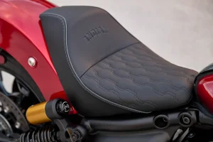 1. The upgraded, fully adjustable suspension on the 2025 Indian 101 Scout improves the ride everywhere. Everyone complains about the sometimes-harsh ride of standard Scouts’ shocks, and rightfully so. The 101’s piggyback reservoir shocks are nothing like that. They’re supple and make the most of the three inches of wheel travel they manage. All the Scouts deserve rear suspension of this quality.