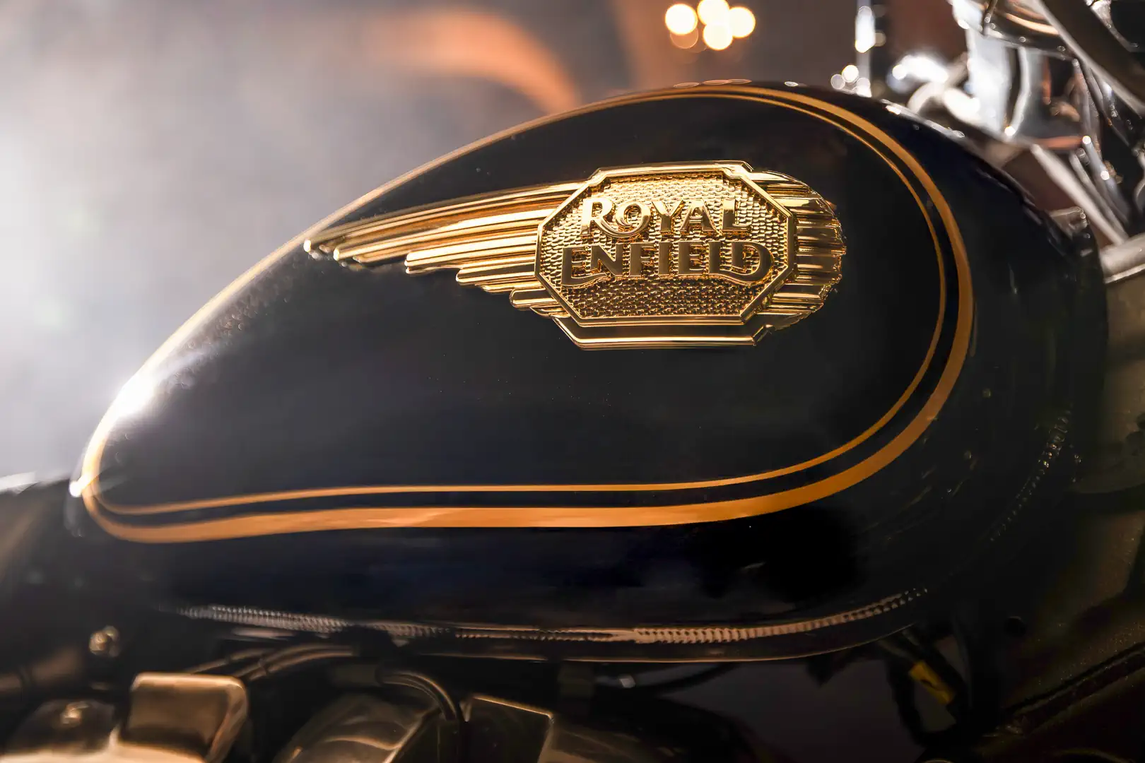 - Royal Enfield loves branding. You’ll find its name on the grips and footpeg covers, along with the usual locations, including the clutch cover.