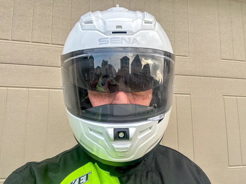 If you are okay with riding with the Sena app open on your phone, you can control most functions with a finger touch and do not need to physically press the buttons on the helmet—especially those on the throttle side. The brake-sensing (via accelerometers) taillight and the active noise cancellation functions are typically set and forget.