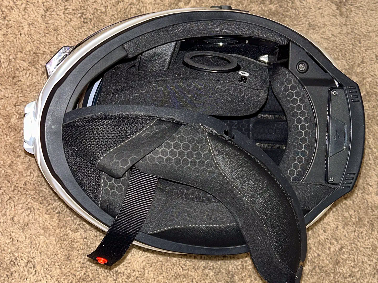 If you do come up short, you power it while riding through the USB-C port at the rear of the helmet. Back home, it charges from empty to full in just 2.5 hours. When you stop, the Phantom will power down if it hasn’t moved in three minutes, and power back up when you pick it up to put it on. There is a lot of technology built into the Phantom, and Sena covers it all with a three-year warranty.